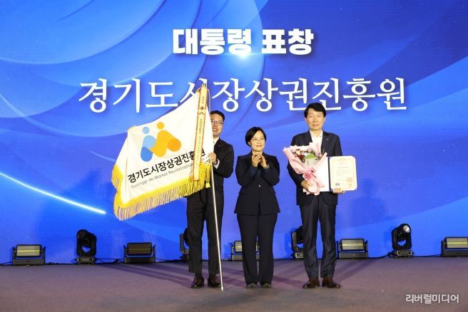 [리버럴미디어=공소리 기자] 경기도시장상권진흥원이 중소벤처기업부 주최로 열린 ‘제21회 전국우수시장박람회’ 시상식에서 전통시장·상점가 활성화 공로를 인정받아 대통령 표창을 수상했다.