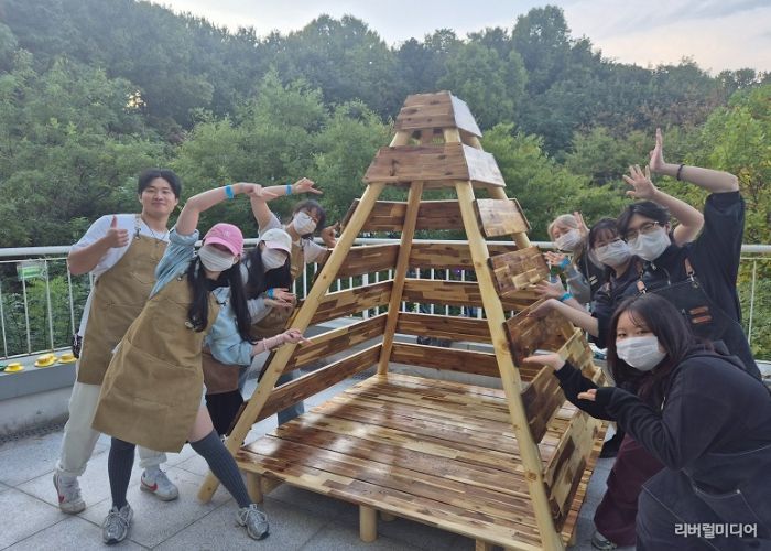 [리버럴미디어=공미소 기자] 부천여성청소년재단이 운영하는 소사청소년센터 소속 청년공예활동가 열매는 지난 7월부터 목공예 집중교육과 창작활동 등을 통해 센터 2층 테라스 공간에 비치할 WOOD TEEPEE(인디언 텐트)를 제작 완료했다.