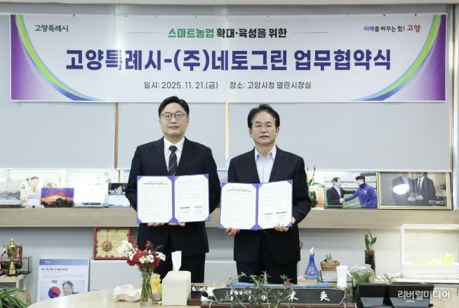 [리버럴미디어=공소리 기자] 고양특례시는 지난 21일(금) ㈜네토그린과 ‘스마트농업 확대·육성을 위한 업무협약(MOU)’을 체결했다고 밝혔다.