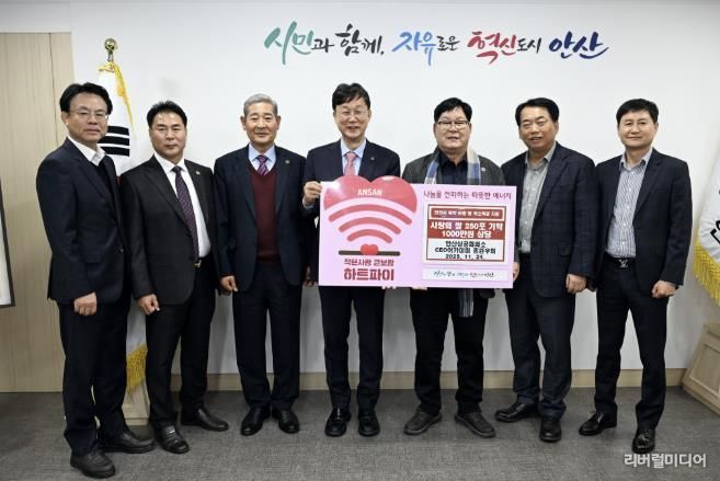[리버럴미디어=공소리 기자] 안산시는 지난 24일 안산상공회의소 CEO 아카데미 총원우회로부터 쌀 250포(포대당 10kg, 1,000만 원)를 기탁받았다고 25일 밝혔다.
