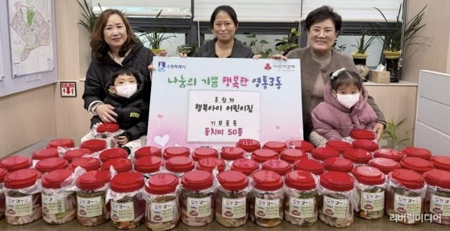 [리버럴미디어=공소리 기자] 수원특례시 영통구에 소재한 행복아이 어린이집은 지난 24일 원아들과 함께 영통3동 행정복지센터를 방문하여 직접담근 동치미 50통을 전달하며 따뜻한 겨울나눔을 실천했다.