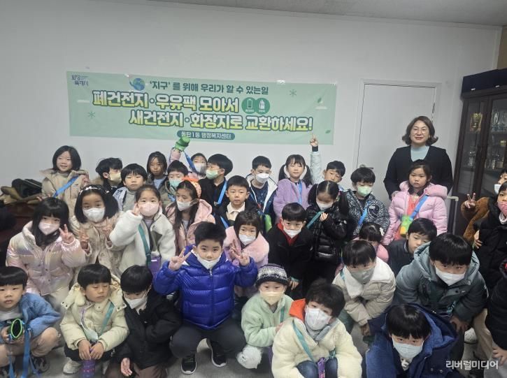 [리버럴미디어=공소리 기자] 화성특례시 동탄1동 행정복지센터는 지난 11월 26일(수) 관내 유치원 7세 어린이 35명을 대상으로 폐건전지와 우유팩 자원 순환 캠페인을 진행했다.
