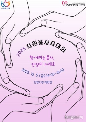 [리버럴미디어=공소리 기자] 안양시자원봉사센터는 12월 5일 오후 2시, 시청 강당에서 ‘2025 안양시 자원봉사자대회’를 연다고 28일 밝혔다.