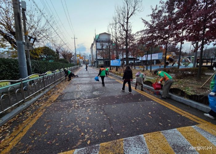 청소에는 통장협의회원 11명, 자율방재단원 13명, 광명6동 행정복지센터 직원 3명이 참여했으며, 낙엽이 많이 쌓인 지역과 이면도로, 빗물받이 주변을 중심으로 정비를 진행했다.