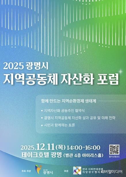 시는 오는 11일 오후 2시 테이크호텔 광명 별관 4층 아이리스홀에서 ‘2025년 광명시 지역공동체 자산화 포럼’을 개최한다.