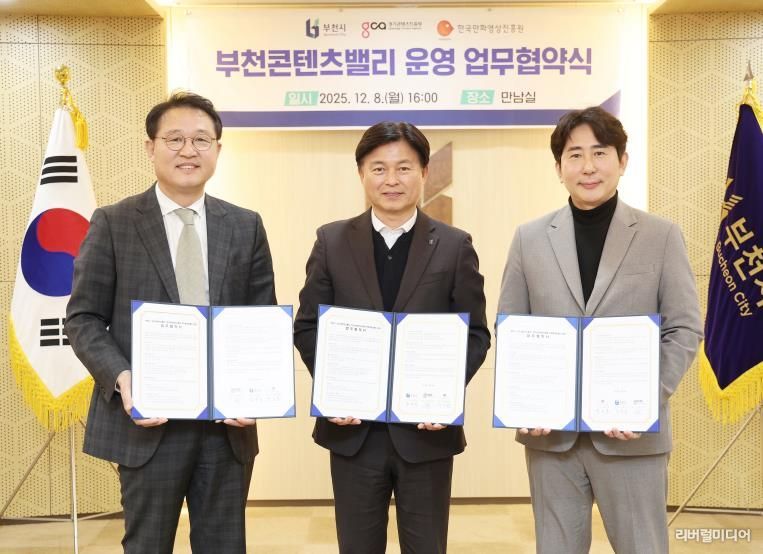 [리버럴미디어=공미소 기자] 부천시는 지난 8일 시청 만남실에서 경기콘텐츠진흥원, 한국만화영상진흥원과 함께 ‘부천콘텐츠밸리’ 조성 사업의 성공적 추진을 위한 3자 간 업무협약(MOU)을 체결했다.