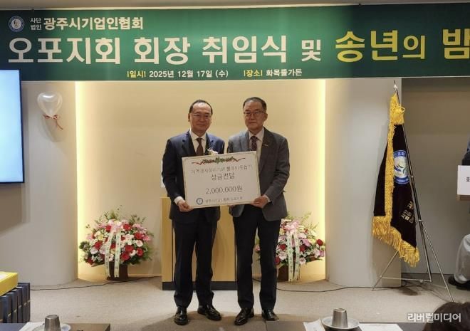 [리버럴미디어=공소리 기자] (사)광주시기업인협회 오포지회는 지난 17일 송년회를 개최하고 지역 내 어려운 이웃을 돕기 위해 농협 상품권 200만 원을 광주시 오포1동 행정복지센터에 기탁했다.