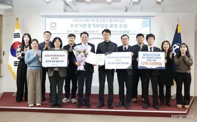 [리버럴미디어=공소리 기자] 안양시는 중소벤처기업부가 주관한 ‘2025년 전통시장 및 상점가 활성화 유공’ 포상에서 우수 지자체로 선정돼 중소벤처기업부 장관 표창을 수상했다고 19일 밝혔다.