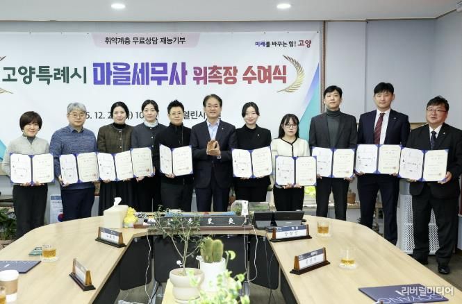 이날 위촉된 고양시 제6기 마을세무사는 총 40명으로, 향후 동별로 지정돼 영세자영업자 등 세무사 상담 이용이 어려운 주민을 대상으로 2026년부터 2027년까지 2년간 무료 세무상담 등을 실시하게 된다.
