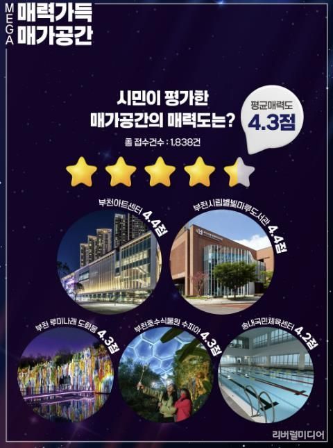 [리버럴미디어=공미소 기자] 부천시는 시민이 직접 참여한 ‘MEGA(매가) 공간’ 매력도 조사 결과를 발표했다. 이번 공모는 공간에 대한 시민의 체감도와 이용 경험을 파악하고, 이를 바탕으로 향후 공간 운영과 정책 방향을 설정하기 위해 실시됐다.