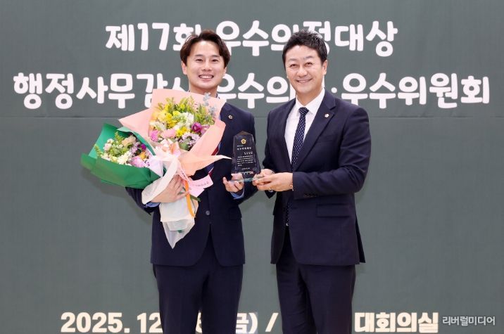 [리버럴미디어=공소리 기자] 경기도의회 문화체육관광위원회 황대호 위원장(더불어민주당, 수원3)이 지난 26일 경기도의회 대회의실에서 진행된 대한민국시도의회의장협의회 주관 ‘제17회 우수의정대상’ 시상식에서 우수의정대상을 수상했다.