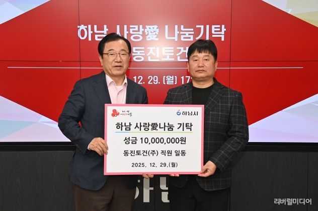 하남시 관계자는 “지역의 미래를 위한 뜻깊은 나눔에 동참해주신 ㈜동진토건에 감사드리며, 기탁자의 뜻에 따라 성금은 도움이 필요한 아동․청소년에게 소중히 전달하겠다”고 감사 인사를 전했다.