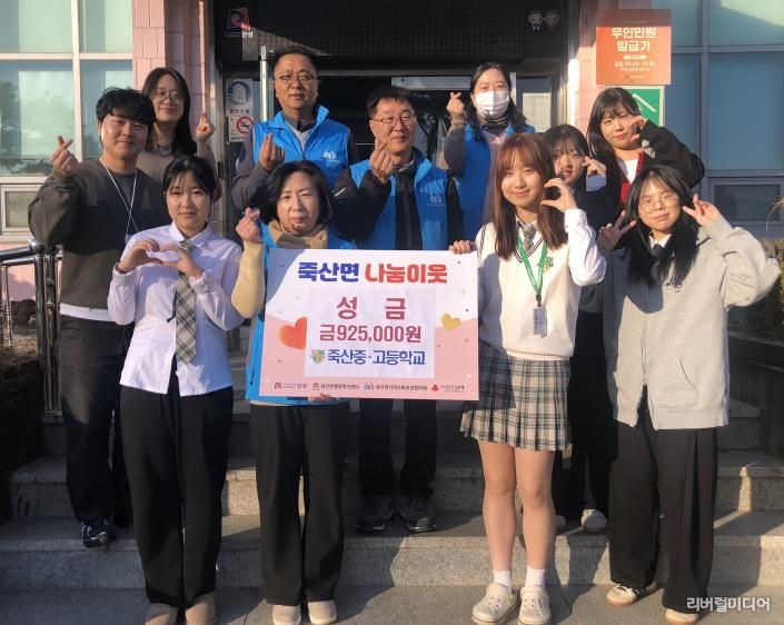 [리버럴미디어=공소리 기자] 죽산중·고등학교는 지난 2일 2025학년도 동아리박람회 수익금 전액인 925,000원을 죽산면 저소득층을 위해 죽산면지역사회보장협의체에 기탁했다.