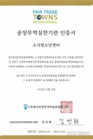 [리버럴미디어=공미소 기자] 부천여성청소년재단이 운영하는 소사청소년센터는 지난달 27일 사단법인 한국공정무역마을위원회로부터 ‘공정무역 실천기관’ 2차 재인증을 획득했다.