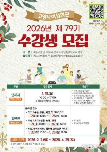 [리버럴미디어=공소리 기자] 고양특례시 여성회관은 오는 1월 19일부터 26일까지 2026년도 제79기 정규강좌 수강생을 모집한다고 밝혔다.