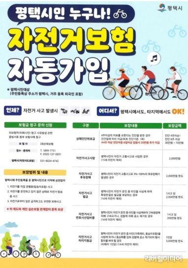 [리버럴미디어=공소리 기자] 평택시가 시민의 안전한 자전거 이용을 위해 전 평택시민을 대상으로 하는 자전거 보험을 2026년에도 갱신 가입하고, 각종 자전거 사고에 대비한 보장을 지속 제공한다고 밝혔다.