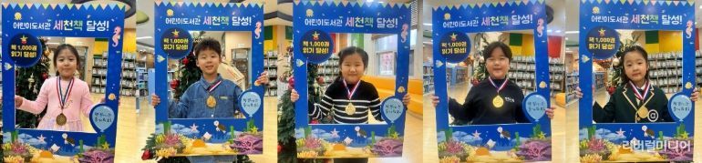 이번 완독의 영예를 안은 어린이는 107호 이예담, 108호 이예준, 109호 안재은, 110호 이우재, 111호 정해인 어린이로, 도서관은 이들의 성취를 축하하기 위해 인증서와 메달을 수여하는 기념식을 진행했다.