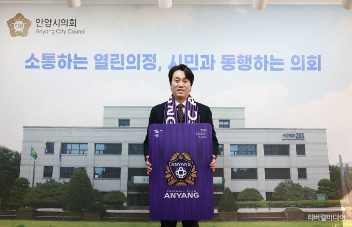 [리버럴미디어=공소리 기자] 안양시의회 박준모 의장이 1월 23일 시의회 의장실에서 2026시즌 FC안양 연간회원권을 구매했다.