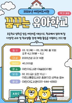 [리버럴미디어=공소리 기자] 이천시 어린이도서관은 초등학교 입학을 앞둔 2020년생 유아를 대상으로 독서·체험 프로그램인 ‘2026년 꿈꾸는 유아학교’를 운영한다.