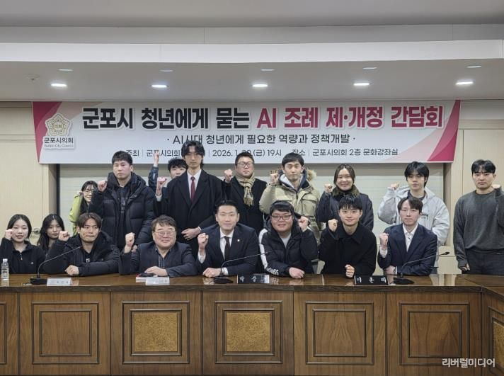 [리버럴미디어=공소리 기자] 군포시의회 박상현 의원(국민의힘, 재궁동·오금동·수리동)은 AI 기술 확산 시대를 맞아, 청년의 현실적 요구를 정책으로 연결하기 위한 ‘군포시 청년에게 묻는 AI 조례 제·개정 간담회’를 지난 1월 31일 군포시의회 2층 문화강좌실에서 주도하여 주목받고 있다.