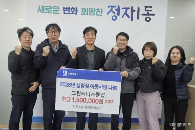 [리버럴미디어=공소리 기자] 수원시 장안구 정자1동은 지난 3일, 그린테니스클럽이 설 명절을 맞아 관내 취약계층을 돕기 위한 기부금 150만원을 전달했다고 밝혔다.