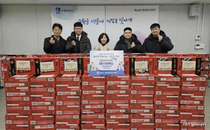 [리버럴미디어=공소리 기자] 지난 3일 수원성결교회는 설 명절을 맞아 수원시 팔달구 매교동에 관내 복지 사각지대에 있는 어려운 이웃들이 따뜻한 명절을 보낼 수 있도록 라면(20개입) 100박스를 후원했다.