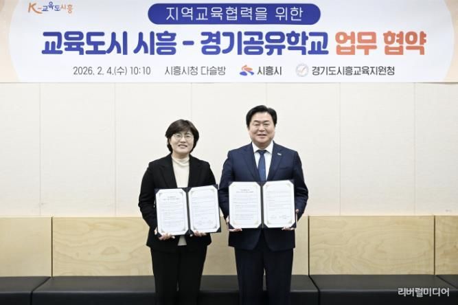 [리버럴미디어=공소리 기자] 시흥시는 지난 2월 4일 시청 다슬방에서 시흥교육지원청과 함께 ‘지역교육협력을 위한 교육도시 시흥-경기공유학교’ 업무협약을 맺었다.