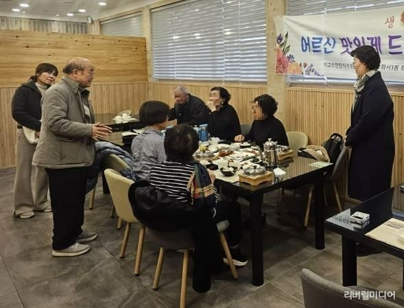 [리버럴미디어=공소리 기자] 수원시 팔달구 화서1동은 지난 4일, 2월 생일을 맞이한 독거어르신 7명을 모시고 이교수한정식에서 '어르신 사랑의 생신상' 행사를 진행했다.
