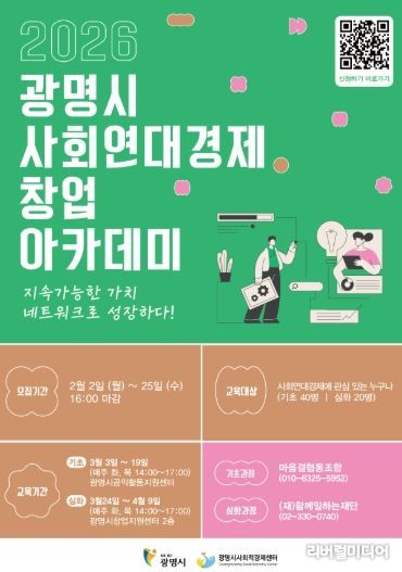 [리버럴미디어=공소리 기자] 광명시가 ‘2026년 광명시 사회연대경제 창업 아카데미’ 수강생을 오는 25일까지 모집한다.