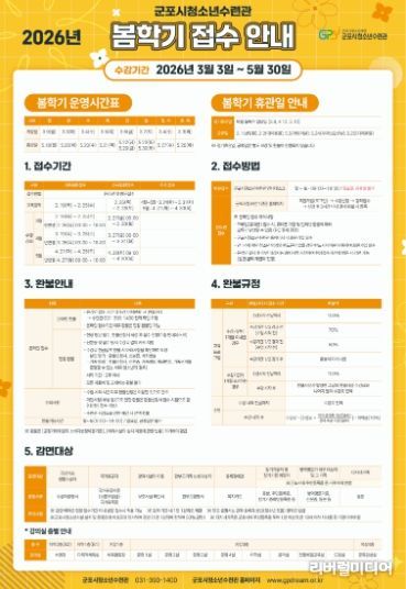 군포시청소년수련관 박윤정 관장은 “시민 누구나 배움과 건강을 동시에 누릴 수 있도록 준비했다”며 “접수 일정에 맞춰 많은 관심과 참여를 바란다”고 전했다.