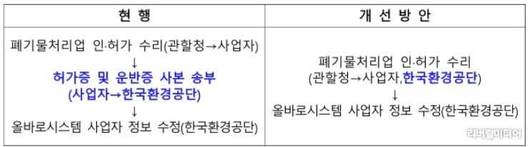 그동안 폐기물처리업 인허가(변경)가 이루어질 경우, 사업자가 직접 허가증 사본을 한국환경공단에 제출해 올바로시스템 변경을 요청해야 하는 번거로운 절차가 있었으며, 이로 인해 폐기물 처리 지연이나 정보 불일치 등의 문제가 발생하기도 했다.