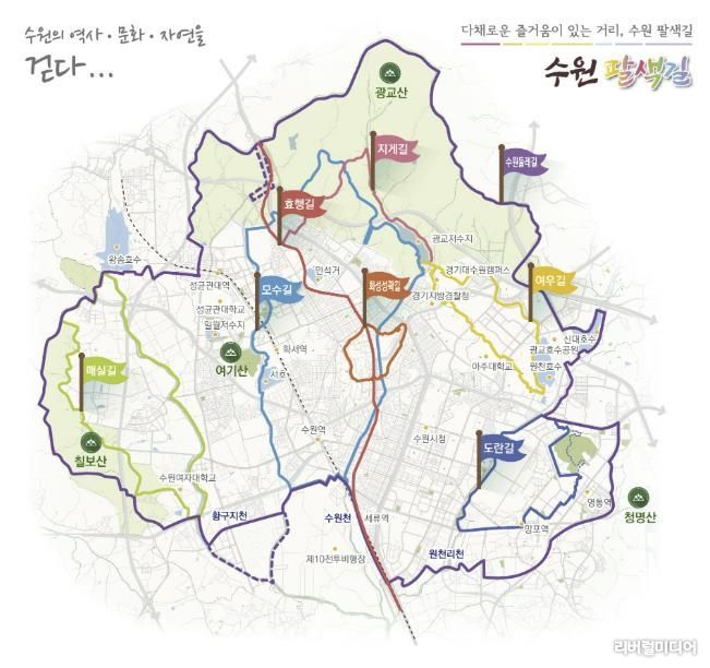 [리버럴미디어=공소리 기자] 수원특례시는 수원 전역 수원팔색길 구간에서 도시개발로 단절된 노선을 복원하고 노후 이정표와 시설물을 교체하는 ‘수원팔색길 종합정비’를 5월까지 추진한다.
