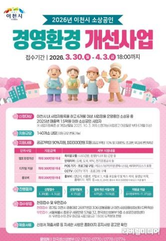 [리버럴미디어=공소리 기자] 이천시는 관내 소상공인의 사업 경쟁력을 강화하기 위하여 2026년 소상공인 경영환경개선사업을 추진한다. 한국생산성본부와 협약을 체결하여 2024년에 시작한 이번 사업은 올해 세 번째를 맞이했다.