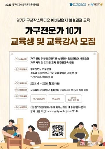 현재 가구 디자인 및 제작 분야에 관심 있는 경기도민 대상으로 교육생을 모집하고 있으며, 기초 제작부터 디자인, 창업 역량 강화 교육까지 체계적인 프로그램이 제공될 예정이다.