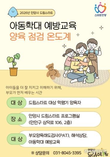 [리버럴미디어=공소리 기자] 안양시가 아동 학대를 사전에 차단하고 건강한 양육 환경을 조성하기 위해 맞춤형 부모 교육 프로그램인 ‘2026 드림스타트 양육 점검 온도계’를 본격 가동한다고 18일 밝혔다.
