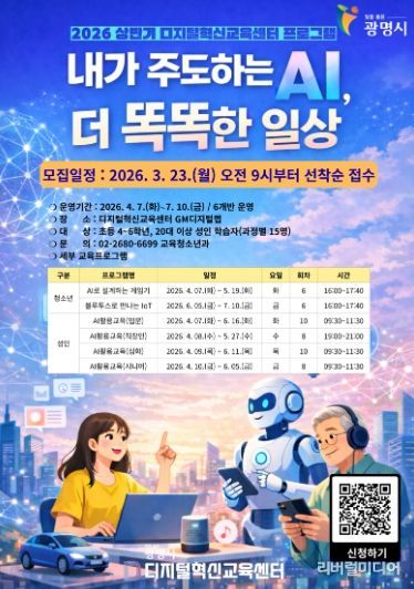 수강 신청은 오는 23일부터 광명시 디지털혁신교육센터 누리집에서 선착순으로 진행한다.
