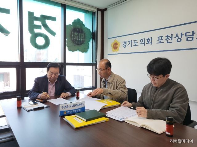 [리버럴미디어=공소리 기자] 경기도의회 농정해양위원회 소속 김성남 의원(국민의힘, 포천2) 4월2일 경기도의회 포천상담소에서 경기도 축산동물복지국 관계자들과 아프리카돼지열병 발생에 따른 피해 농가 지원 방안을 논의하는 정담회를 가졌다.