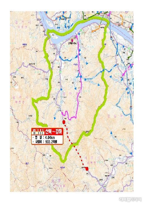 이번 계획에 반영된 ‘지방도333호선 산북~강하 간 도로건설사업’은 양평군 강하면 항금리와 여주시 산북면을 연결하는 지역 간 지방도 노선으로, 군은 이 가운데 미개설로 단절된 4.04㎞ 구간에 총사업비 933억 원을 투입해 2차로로 신설할 계획이다.