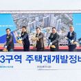 [리버럴미디어=공소리 기자] 수원 영화동 111-3구역이 정비구역으로 지정된 지 16년 만에 첫 삽을 떴다. 수원시는 10월 31일 장안구 경수대로 815-2 현지에서 111-3구역 주택재개발정비사업 착공식을 개최했다. 착공식에는 이재준 수원시장, 김승원(수원시갑) 의원, 수원시의회 강영우 의원, 111-3구역 주택재개발정비사업 이지수 조합장과 조합원, 시공사(두산건설) 관계자 등이 참석했다. 111-3구역은 2009년 재개발 정비구역으로 지정됐지만 정비구역이 해제되고, 다시 해제가 취소되는 등 사업 추진에 난항을 겪었다. 마침내 2023년 5월 관리처분인가를 받았다. 111-3구역에는 지하 2층·지상 29층 공동주택 6개 동(556세대)이 건립된다. 2028년 8월 준공 예정이다. 이재준 시장은 “재개발 사업 추진 과정에서 많은 우여곡절이 있었는데, 똘똘 뭉쳐서 착공을 이뤄낸 조합원들에게 축하를 전한다”며 “안전하게, 멋진 공동주택단지를 건설할 수 있도록 다들 도와주시길 바란다”고 말했다. 이어 “수원시는 기존에 5~10년 걸리던 신규 정비구역 지정 기간을 2년으로 단축해 신속하게 정