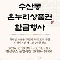 [리버럴미디어=공소리 기자] 수원시농수산물도매시장 수산동이 설을 맞아 2월 10일부터 14일까지 온누리상품권 환급 행사를 연다. 행사 기간에 수산동에서 국내산 수산물을 구매하면 최대 2만 원을 온누리상품권으로 환급받을 수 있다. 해양수산부가 주관하는 ‘설 온누리상품권 환급행사’는 국내산 수산물 구매 금액의 최대 30%를 온누리상품권으로 환급해 주는 것이다. 1인당 최대 환급 금액은 2만 원이다. 구매 금액이 3만 4000원 이상이면 1만 원, 6만 7000원 이상이면 2만 원을 온누리상품권으로 받을 수 있다. 수산동 내 59개 점포 중 43개 점포가 행사에 참여한다. 취급 품목은 냉동 수산물, 선어, 조개류, 활어, 건어 등이다. 참여 점포는 수원시농업기술센터 홈페이지 공지사항 게시판에서 확인할 수 있다. 행사 기간 내 당일 오전 10시부터 오후 6시 사이에 결제한 영수증을 환급행사부스로 가져가 본인 확인을 한 후 온누리상품권을 환급받을 수 있다. 수원시 관계자는 “국내 수산물 소비 활성화, 체감 물가 안정화를 위해 온누리상품권 환급행사를 연다”며 “많은 분이 수원시농수산물도매시장을 찾아주시길 바란다”고 말했다.