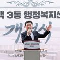 [리버럴미디어=공소리 기자] 용인특례시 기흥구 동백3동행정복지센터가 늘어나는 행정 수요에 맞춰 시민을 위한 복합행정시설로 새롭게 문을 열었다. 용인특례시는 3일 오후 기흥구 동백3동행정복지센터에서 신청사 개청식을 개최했다. 개청식에는 이상일 시장과 시민 150여 명이 함께해 신청사 건립을 축하했다. 이 시장은 이날 청사 건립에 기여한 이들에게 표창을 수여한 뒤 센터 시설을 둘러봤다. 동백동은 2017년 인구가 8만 명을 돌파하면서 2020년 1월 동백 1·2·3동으로 각각 분동됐다. 시는 2020년 6월 동백3동 청사추진협의체를 구성한 뒤 같은 해 9월 행정복지센터 기본계획을 수립하고 청사 건립을 추진했다. 동백3동행정복지센터는 2024년 1월 공사에 들어가 2026년 1월 준공됐다. 센터는 지상 1~4층 연면적 4681㎡ 규모로 조성됐다. 1층은 주차장, 2층은 민원실과 공유주방, 소회의실 등 행정서비스 공간이 마련됐다. 3층은 대회의실과 주민자치사무실, 4층은 다목적강당과 체력단련장 등이 들어섰다. 시는 시민을 위한 다양