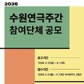 [리버럴미디어=공소리 기자] 수원문화재단은 지역 공연예술 생태계 활성화와 시민들의 문화 향유 기회 확대를 위해 2026 ‘수원연극주간’에 참여할 문화예술단체를 공개 모집한다. ‘수원연극주간’은 관내 공연예술단체의 공연 실연을 지원하는 사업으로, 올해는 5월 29일(금)부터 6월 28일(일)까지 진행할 예정이다. 이번 공모는 공고일 기준 수원시 소재 공연예술단체라면 지원이 가능하며, 선정된 단체는 수원 관내의 실내외 공간에서 공연을 선보이게 된다. 특히 일부 일정에 한하여 정조테마공연장, 빛누리아트홀, 팔달문화센터 예당마루 등 주요 공연장 3곳의 대관도 지원할 예정이다. 본 공모의 지원 규모는 총 2,500만 원으로, 선정된 단체는 사업 내용에 따라 최대 600만 원까지 차등 지원한다. 참여 희망 단체는 공연 장소와 내용, 홍보 계획 등을 포함한 운영 전반에 대한 신청서를 제출해야 하며, 전문가로 구성된 심의위원회의 심사를 거쳐 최종 선정할 예정이다. 수원문화재단 관계자는 “2026 수원연극축제 기간과 연계하여 진행되는 ‘수원연극주간’을 통해 관내 예술단체에는 무대의 기회를, 시민들에게는 다채로운 볼거리를 제공하고자 한다”며, “지역 공연예술계에 새로운 활기를