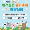 [리버럴미디어=공소리 기자] ㈜빅프렌즈가 주관하는 ‘2025년 양주시 반려동물 문화축제’가 오는 26일 옥정동 선돌근린공원에서 열린다. 이번 축제는 반려동물 보호자와 시민이 함께 즐기고 배우며, 반려동물 관련 산업과 단체가 교류하는 ‘반려동물 친화도시 양주’ 실현의 장으로 마련됐다. 특히 지난해보다 참여 기관과 단체가 대폭 확대돼 더욱 풍성한 프로그램이 준비됐다. 축제는 오전 10시부터 오후 6시까지 진행되며 ▲반려동물 체험부스 ▲관련 기업 홍보관 ▲시민 참여형 이벤트(이색 장기자랑, 강아지 모델 선발대회 등) ▲푸드트럭 ▲럭키드로우 추첨 등 다채로운 프로그램이 운영된다. 시 관계자는 “이번 축제를 통해 반려동물과 시민이 함께하는 건전한 문화가 확산되길 기대한다”며 “많은 시민들의 관심과 참여를 부탁드린다”고 말했다.