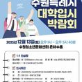 [리버럴미디어=공소리 기자] 수원시청소년청년재단청소년희망등대는 2026학년도 대입을 준비하는 수험생과 학부모를 위해 오는 12월 13일 수원청소년문화센터에서 ‘수원특례시 2026학년도 대학입시박람회’를 개최한다. 박람회는 이날 오후 1시부터 5시 40분까지 진행된다. 이번 정시전형 박람회에서는 ▴개별 맞춤형 1:1 입시 컨설팅 ▴2026학년도 수능 성적 분석 및 지원전략을 다루는 입시특강 등 실질적 정보를 제공하는 프로그램이 진행될 예정이다. 1:1 진학 컨설팅은 총 120명을 대상으로 진행되며, 11월 25일 오전 9시부터 홈페이지 선착순 접수로 운영된다. 참가자는 수능 성적표와 학교생활기록부 등 관련 자료를 지참해야 한다. 입시전략 특강은 오후 2시부터 3시 30분까지 열리며, 입시 전문가 최승후 선생님이 녪학년도 수능성적 분석 및 정시지원전략-정시지원 가능점수 분석’을 주제로 강연한다. 특강은 100명 선착순 접수로 운영되며, 수험생뿐 아니라 학부모도 참여할 수 있다. 수원시청소년청년재단 최종진 이사장은 “수험생과 학부모가 정확한 정보를 바탕으로 전략적으로 대입을 준비할 수 있도록 이번 박람회