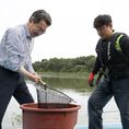 [리버럴미디어=공소리 기자] 김동연 지사가 이번에는 달달투어 도중 ‘한탄강 청년어부’를 만났다. 바다에서 하는 어업 외에 내수면어업(육지의 하천, 호수 같은 담수에서 이뤄지는 어업)을 지원하겠다는 메시지였다. ‘한탄강 청년어부’는 구독자 17만 명을 자랑하는 유튜브 채널 이름이자 운영자인 1988년생 김은범씨의 닉네임이기도 하다. 오늘 김 지사는 임진강(임진강은 한탄강과 같은 줄기) 수위 점검을 한 뒤 조업을 마치고 돌아온 한탄강 청년어부의 고깃배 ‘왕건1호’에 성큼 올라섰다. 청년어부가 활어통 뚜껑을 열어 갓 잡아온 물고기를 뜰채로 들어올려 김 지사에게 보여줬다. 만선까지는 아니어도 활어통에는 물고기가 가득 담겨 있었다. 메기,쏘가리, 장어, 빠가사리 등도 보였다. 청년어부 김은범씨가 또 한 개의 활어통을 열자 참게가 그득했다. 김 지사는 청년어부와 함께 어획한 참게를 자동차로 옮겨 실었다. 청년어부 김은범 씨는 한탄강(또는 임진강)에서 직접 잡은 물고기로 밀키트를 제작해 온라인 판매하고 있다. 전국에서 민물고기로 밀키트를 만든 것은 그가 처음이라고 한다. 한탄강 어획물