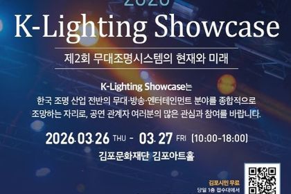 [리버럴미디어=공소리 기자] (재)김포문화재단(대표이사 이계현)은 김포아트홀에서 오는 3월 26일부터 27일까지 이틀간 국내 무대조명 산업의 현재와 미래를 한자리에서 조망하는‘2026 K-Lighting Showcase’를 개최한다고 밝혔다. ‘K-Lighting Showcase’는 한국 조명 산업 전반의 무대·방송·엔터테인먼트 분야를 종합적으로 소개하는 전문 전시·교류 행사로, 산업 관계자들에게 최신 기술과 트렌드를 공유하는 장을 제공한다. 올해로 2회를 맞이한 이번 행사는 무대조명 시스템의 발전 방향과 미래 비전을 집중적으로 다룰 예정이다. 이번 행사는 (재)김포문화재단과 (사)한국조명가협회가 주최하며, (사)한국조명가협회가 주관하고, (사)무대예술전문인협회가 후원한다. 3월 26일(목) 10시 개막식을 시작으로 이틀간 김포아트홀 공연장, 전시실, 세미나실 등에서 시연회, 세미나, 전시 등이 펼쳐질 예정이며, 최신 무대조명과 관련된 기술 교류, 네트워킹을 통해 국내 공연 및 방송 산업 발전에 기여할 것으로 기대하고 있다. 행사에는 관계자 뿐만 아니라 무대기술 및 조명에 관심있는 학생, 시민 등 누구나 참여할
