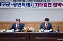 [리버럴미디어=공소리 기자] 용인특례시는 6일 강원특별자치도 양구군과 자매결연을 하고, 두 도시의 교류와 발전을 위해 적극 협력하기로 했다. 이상일 시장은 이날 양구군청 중회의실에서 서흥원 군수와 두 도시 간 우의를 증진하고 상호 교류‧협력하는 데 합의하고, 자매결연 협약서에 서명했다. 이번 협약으로 양구군은 시의 16번째 자매도시가 됐다. 이상일 시장은 “양구는 문화예술 분야에서 과감한 투자를 하고 있고, 양구군립박수근미술관은 2023년 양구 출신 박수근 화백의 1956년 작품 ‘가족’을 품었는데 두 도시가 앞으로 가족처럼 잘 지냈으면 한다”며 “이번 협약을 계기로 양 도시가 협력을 강화해서 함께 발전하길 기원한다”고 말했다. 이 시장은 “양구군과 용인시의 훌륭한 농산물들이 양 도시에서 소비하도록 서로 홍보하는 등 협조 체계를 갖추는 노력도 기울이자"라며 "양구에는 테니스장, 축구장 등 스포츠 시설이 아주 잘 갖춰져 있는 만큼 용인의 스포츠팀이나 단체들이 양구를 찾아 훈련하는 등 체육 분야의 협력도 도모하면 좋겠다"고 했다. 서흥원 군수는 “용인의 인프라와 비전이 대한민국 지방자치단체