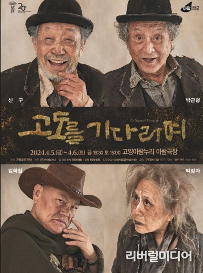 [리버럴미디어=공소리 기자] 고양문화재단(이사장 이동환)은 노벨문학상 수상 작가 사무엘 베케트의 ‘고도를 기다리며’를 오는 4월 5일과 6일 양일간 고양아람누리 아람극장에서 선보인다. 이번 작품에는 신구, 박근형, 박정자, 김학철 등 도합 228년의 연기 내공을 가진 대배우들이 총출동하여 작년 2023년 12월 시작 전부터 화제를 모았던 작품이다.
