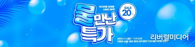 [리버럴미디어=공소리 기자] 경기도와 경기도주식회사가 운영하는 ‘착착착’ 온라인 쇼핑몰(chack3.com)에서 7월 1일부터 31일까지 한 달간 7월 한정 이벤트 ‘물 만난 특가’ 기획전을 진행한다고 30일 밝혔다.