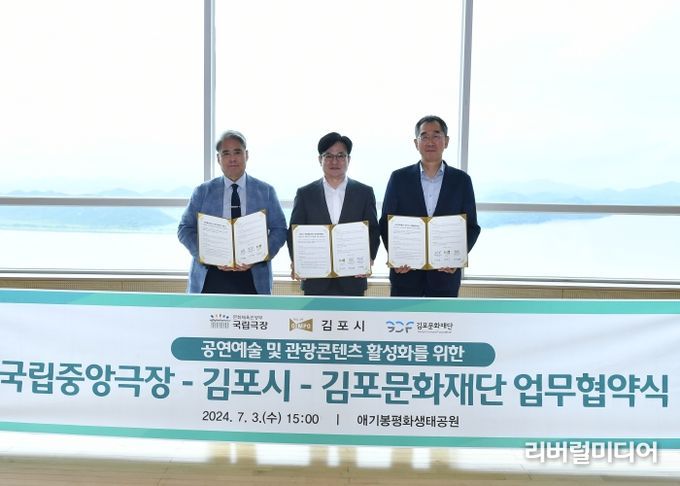 [리버럴미디어=공소리 기자] 김포시는 지난 3일 애기봉평화생태공원에서 국립중앙극장 및 김포문화재단과 공연예술 문화 확산 및 관광콘텐츠 활성화를 위한 업무협약을 체결했다고 밝혔다.